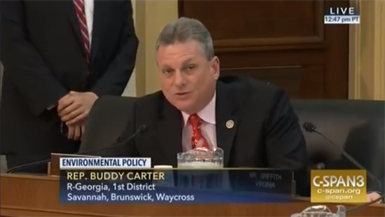 Congressman Carter at the Energy and Commerce Environment Subcommittee hearing on “The Mission of the US Environmental Protection Agency (EPA).” |