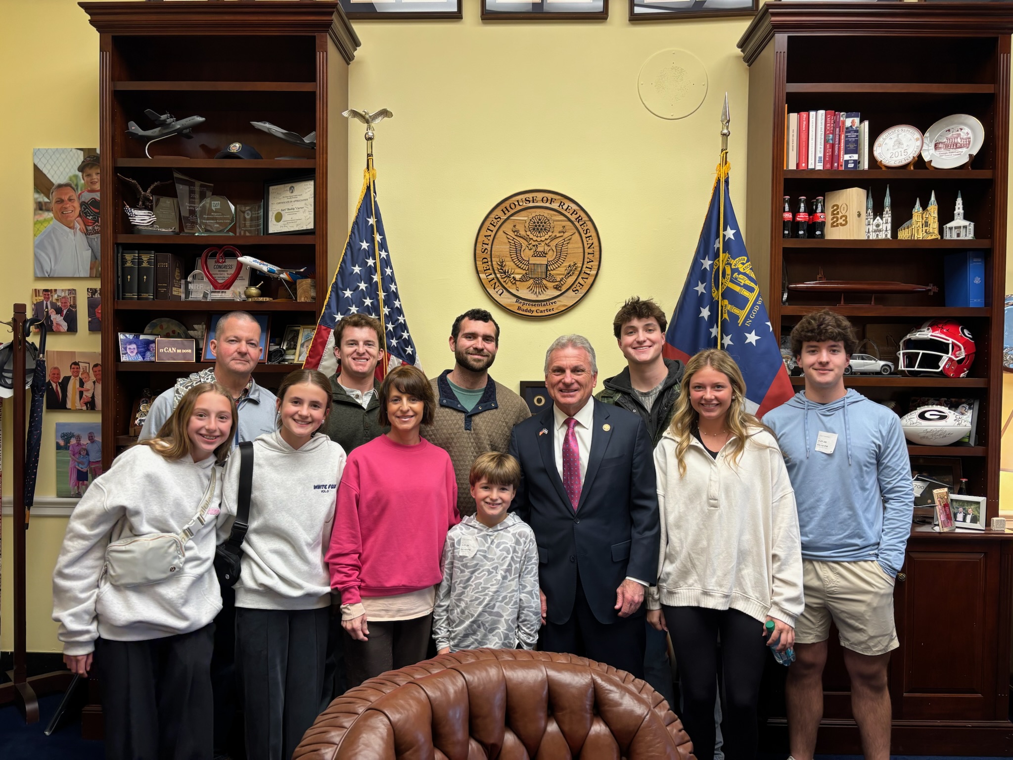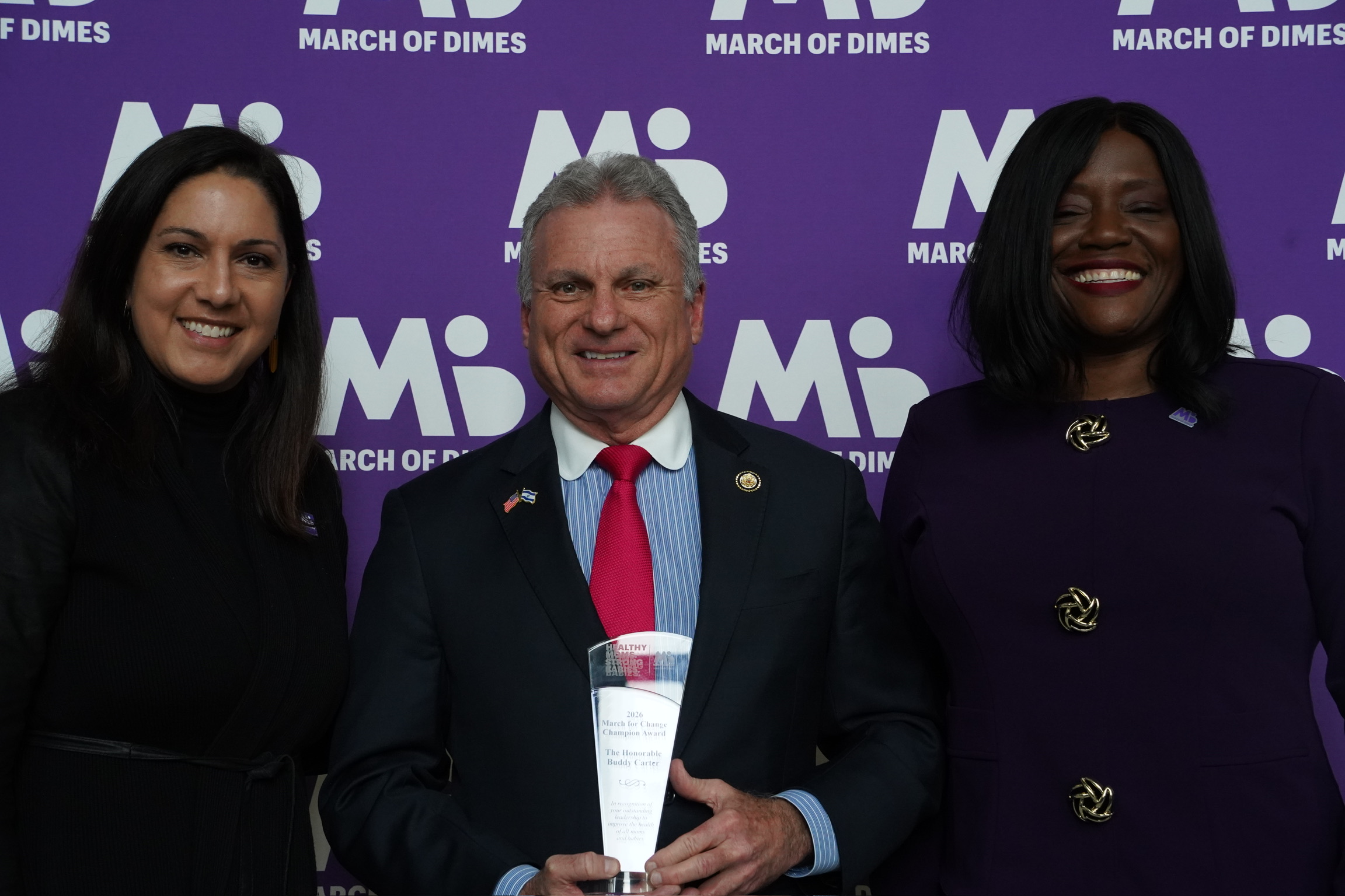 Wednesday, March 25, 2026: After attending our weekly GOP Conference meeting, I head to an Energy and Commerce (E&C) full committee markup and afterwards meet with the Director-General of Hunan Provincial Foreign Affairs. Next, I meet with the Georgia Apartment Association, followed by GATX, and then the Southern Cotton Growers. Later, I meet with Independent Pharmacy Cooperative (IPC) followed by the Georgia Association of Conservation Districts and Rotech Healthcare. After heading to our first vote series of the day, I head back to our office to meet with Orchard Therapeutics before heading back to the chamber for our second and last vote series of the day. After votes I pay tribute to State Representative Edna Jackson (D-Sav) who has announced her retirement and return to the floor later for a special order where I pay tribute to Howard Young who recently passed at the age of 101, Fred Shaver from Bulloch County, Agnes West from Savannah, Georgia State Senator Freddie Powell Simms, who is retiring, Asa High from Frederica Golf Club in St. Simons Island and our Chief of Staff, Chris Crawford, who recently celebrated 20 years of service on Capitol Hill. Next, I head to the Rayburn foyer where I am honored to receive the March of Dimes Congressional Award for my work on maternal mortality and later have a virtual interview on National News Desk to discuss TSA and DHS funding.